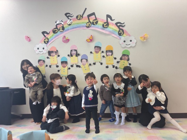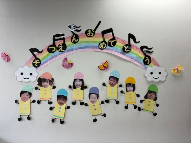 いいところ 02 盛医ひまわりの1年 年間行事 4月 進級・入園おめでとう会 5月 こどもの日まつり 6月 親子遠足 7月 たなばたまつり・じゃがいもの収穫 8月 夏の遊び・水遊び rpt 9月 おまつりごっこ 10月 遠足(1・2歳児)・ハロウィン 11月 勤労感謝の日 12月 クリスマス会 1月 みずき団子づくり 2月 節分の会 3月 ひなまつり会・卒園おめでとう会 毎月の行事 お誕生会 専門学校生との交流の場 前の記事 盛医ひまわりの保育 次の記事