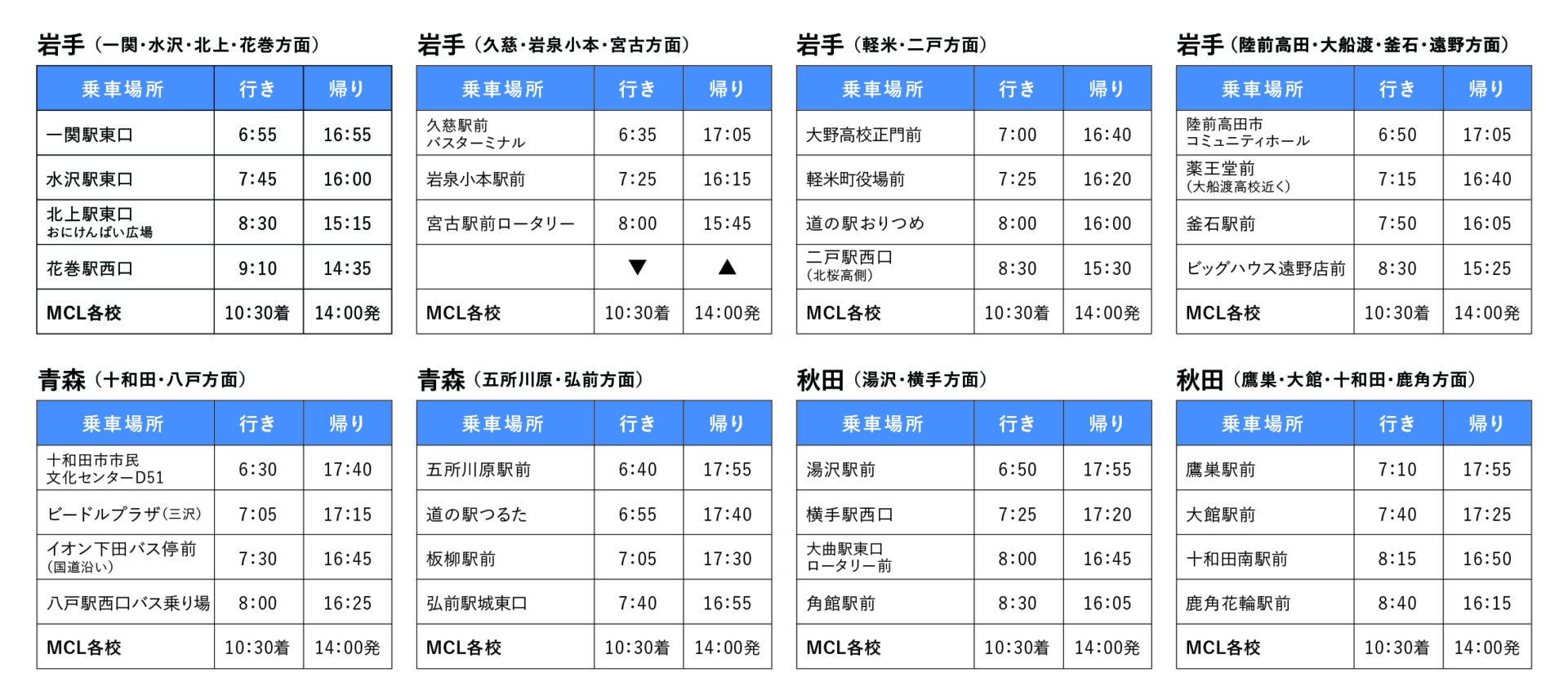 岩手・青森・秋田の各地から無料送迎バスを運行します🚌