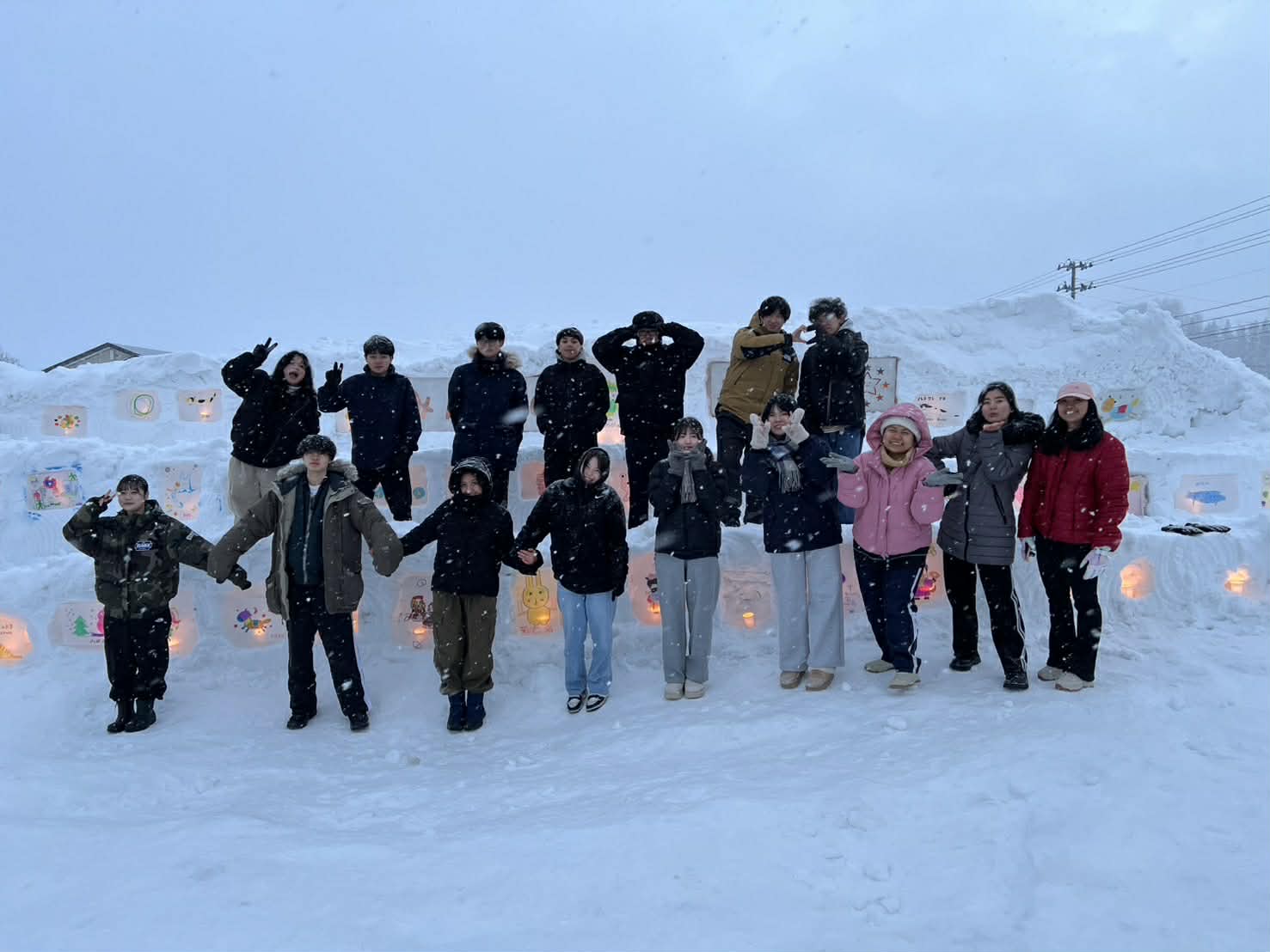 夕方のライトアップに向けて 地元のみなさんと一緒に準備 雪に囲まれながらの作業も、 あたたかい声かけと笑顔でほっこり
